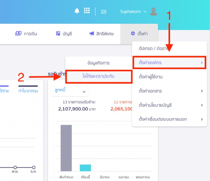 ขั้นตอนที่ 1 ไปที่เมนูตั้งค่า > ตั้งค่าองค์กร > โลโก้และตราประทับ
