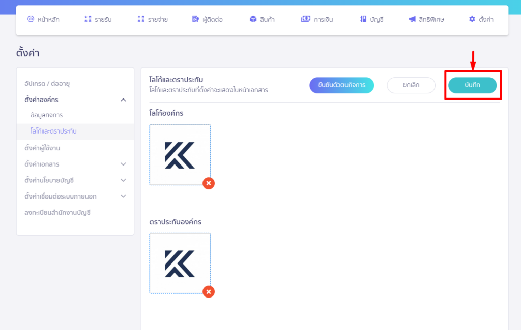-จบขั้นตอนการอัพโหลดโลโก้และตราประทับองค์กร-