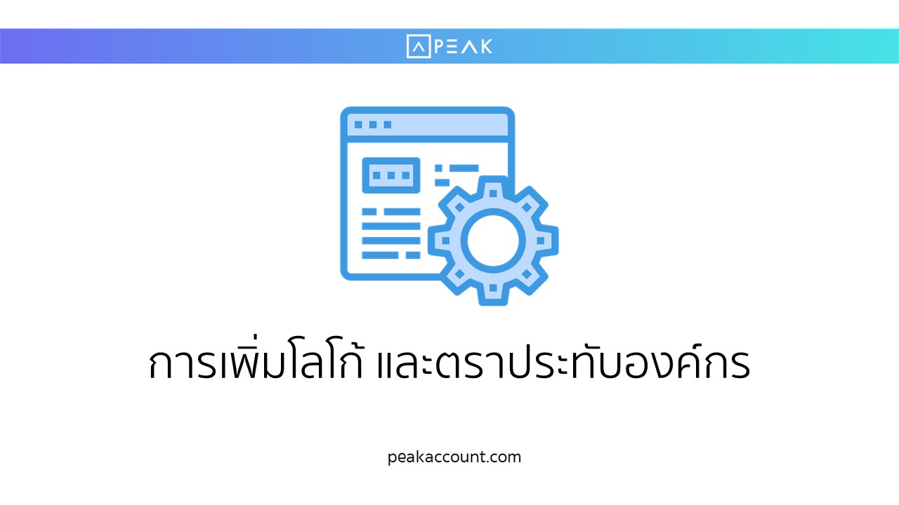สามารถดูวิดิโอการเพิ่มโลโก้ และตราประทับองค์กรได้ที่ลิงก์ PEAK Account คลิปเดียวจบ ครบทุกการตั้งค่า วินาทีที่ 14:55