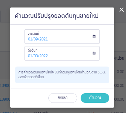 ขั้นตอนที่ 3 เลือกวันที่เริ่มต้นและวันที่สิ้นสุดของการคำนวณต้นทุน