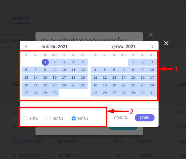 ซึ่งสามารถเลือกเป็นวัน 30 วัน 3 เดือน หรือ 6 เดือนได้ เมื่อเลือกวันเรียบร้อยแล้ว กด ปุ่มตกลง