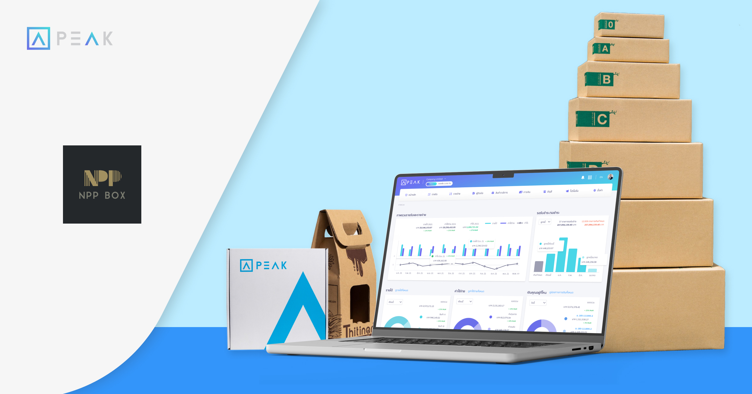 NPP BOX ผู้ผลิตกล่องลูกฟูก, กล่องไปรษณีย์ และกล่องพิมพ์แบรนด์ ทั้งแบบสำเร็จรูปและสั่งผลิต NPP BOX เข้าใจในกลุ่มผู้ประกอบการ โดยมีความตั้งใจว่า ต่อไปนี้กล่องดังกล่าวจะไม่เป็นเพียงแค่บรรจุภัณฑ์อีกต่อไป แต่จะเป็นความประทับใจแรกที่ลูกค้าจะได้รับ พร้อมทั้งช่วยลดต้นทุนให้แก่ผู้ประกอบการได้มีแหล่งผลิตที่มีคุณภาพในราคาไม่แพง บริการอย่างเพื่อนที่จริงใจ ยินดีให้คำปรึกษาอย่างมืออาชีพ เพื่อให้ SME ไทย เติบโตไปด้วยกัน สิทธิพิเศษสำหรับลูกค้า PEAK เมื่อสนใจใช้บริการ NPP BOX ขั้นตอนการรับสิทธิ์