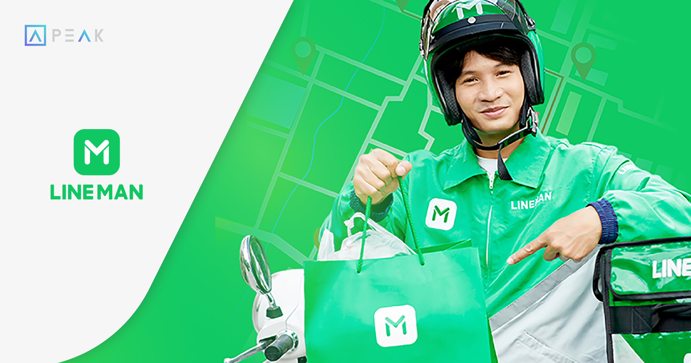 LINEMAN MESSENGER บริการเรียกเมสเซนเจอร์ (Messenger) ส่งได้ 24 ชม. ครบ 77 จังหวัด ไม่ว่าจะส่งของด่วน ส่งเอกสาร หรือลืมของ เรียกเมสเซนเจอร์ง่าย ๆ ผ่านแอป LINE MAN ได้ทุกเมื่อที่ต้องการ ไม่ต้องจองล่วงหน้า ส่งของด่วนได้ทันที แฮปปี้ทั้งคนส่งคนรับ เสมือน Messenger ส่วนตัวคอยบริการ ส่งคุ้มทั่วไทย ทั้งสะดวก ปลอดภัย และประหยัดเวลา ค่าใช้จ่ายตามระยะทางจริง เริ่มต้นแค่ 35 บาท คิดค่าส่งตามระยะทาง 0 – 30 กิโลเมตร เพียง 6.9 – 8.5 บาท/กิโลเมตร ไม่มีค่าเข้ารับ ระบบกำหนดปลายทางแม่นยำ แมพตรง ปักหมุดง่าย ส่งถึงผู้รับภายใน 2 ชั่วโมง พร้อมส่งไป – กลับได้ในออร์เดอร์เดียว เลือกจ่ายเงินได้ทั้งต้นทางและปลายทาง แถมอุ่นใจมีประกันคุ้มครอง สูงสุด 3,000 บาท เหมาะกับพ่อค้า แม่ค้าและทุก ๆ คน สิทธิประโยชน์ลูกค้า PEAK เมื่อใช้บริการ LINEMAN MESSENGER เงื่อนไข และข้อกำหนด